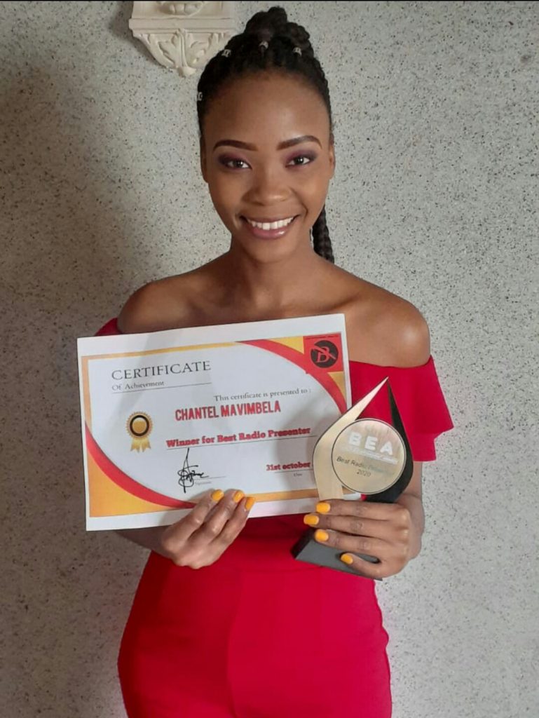 Chantelle Mavimbela is a B.E.A award winner for best radio presenter . She is born and raised in Alexandra township known as (Gomora Maboneng). She is a passionate , hardworking and ambitious soul sister.